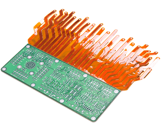 Rigid-flex PCBs combine the benefits of both rigid and flexible PCBs. The rigid parts of the PCB interconnect through flexible PI Kapton layers. The rigid material provides structural support for the components. The PI Kapton enables bendability for both static and dynamic flexible solutions.